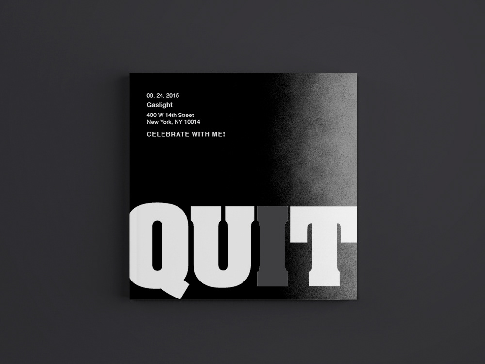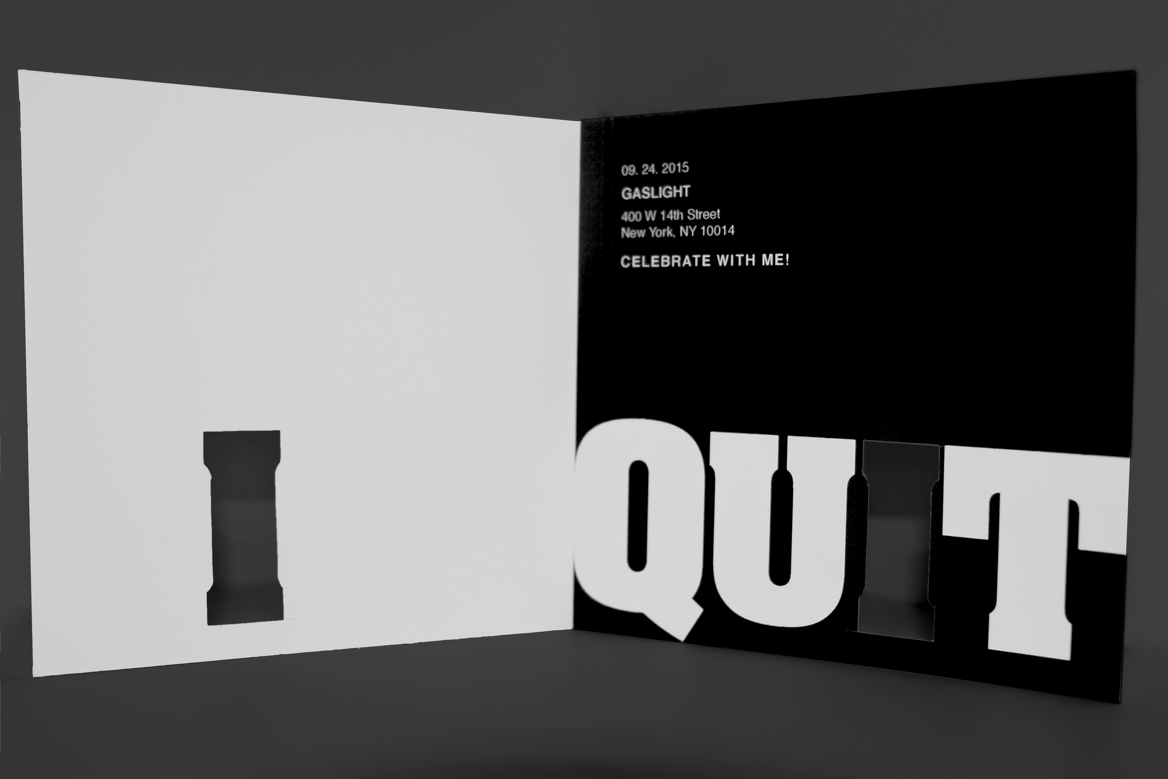 This invitation was created to invite ex-coworkers of the client to an "I Quit My Job" Celebration at a bar.